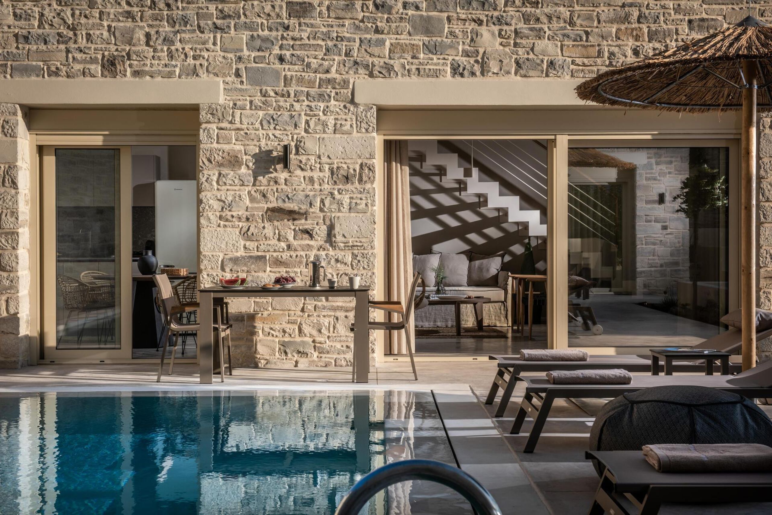The magical view points out the history of the island and the elegant design of the residences transforms the time of each guest into a whole new vacation experience in Crete.