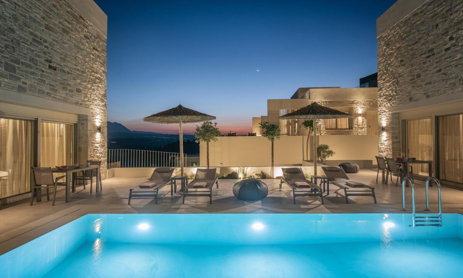 Draußen können Sie sich auf den Sonnenliegen entspannen und ein Bad im Pool unter der mediterranen Sonne genießen.